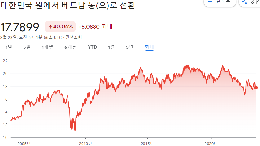 위에 차트를 보았을 때 현재는 원화가 베트남 동화 대비 강세 전환을 했다.